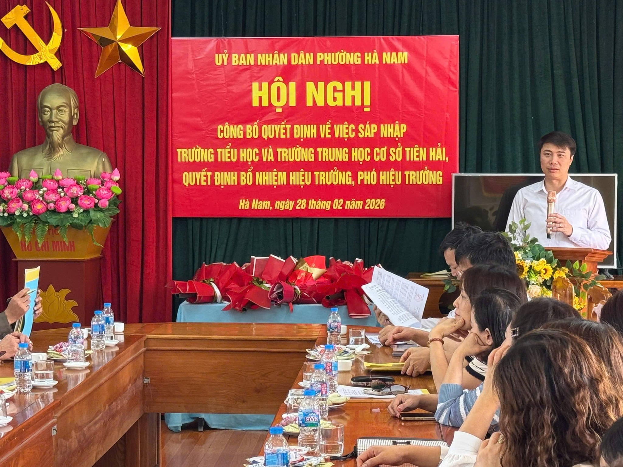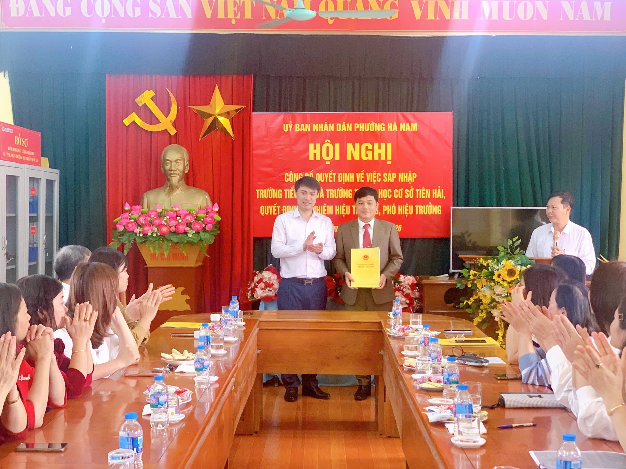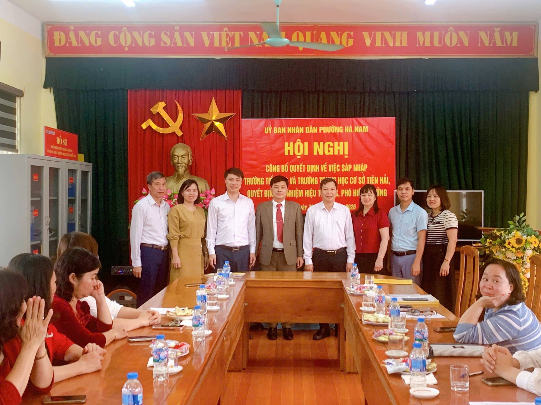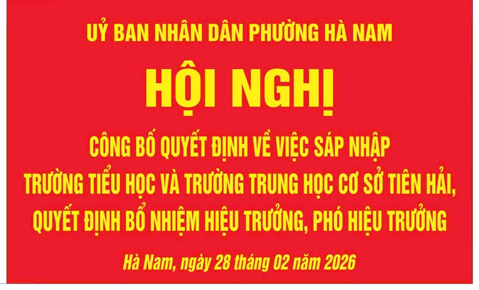 Sáng ngày 28/2/2026. Đồng chí Trịnh Minh Đức – Phó Bí thư ĐU-CT UBND phường cùng các đồng chí lãnh đạo ĐU, UBND, phòng VH-XH phường Hà Nam đã về công bố QĐ sáp nhập trường TH và THCS Tiên Hải, đồng thời công bố QĐ Hiệu trưởng đối với thầy giáo Phạm Văn Quang, Phó Hiệu trưởng đối với cô giáo Trần Thị Thúy Hằng và cô giáo Vũ Thị Lan.